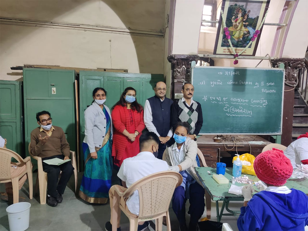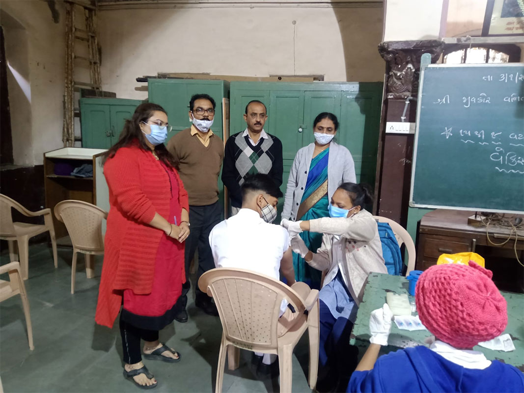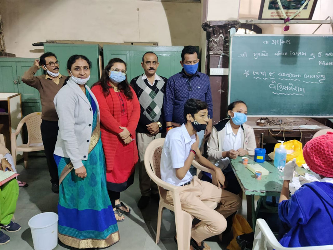 સહર્ષ જણાવવાનું કે સરકારની નીતિ અન્વયે ૧૫ થી ૧૮ વર્ષની વય જૂથના બાળકોના રસીકરણ કાર્યક્રમ અંતર્ગત પૂર્વ કોર્પોરેટર શ્રી મયુરભાઈ દવે અને કોર્પોરેટર શ્રી પંકજભાઈ ની ઉપસ્થિતિમાં વનિતા વિશ્રામ હાઈસ્કૂલમાં રસીકરણ કાર્યક્રમ ની ઝલક